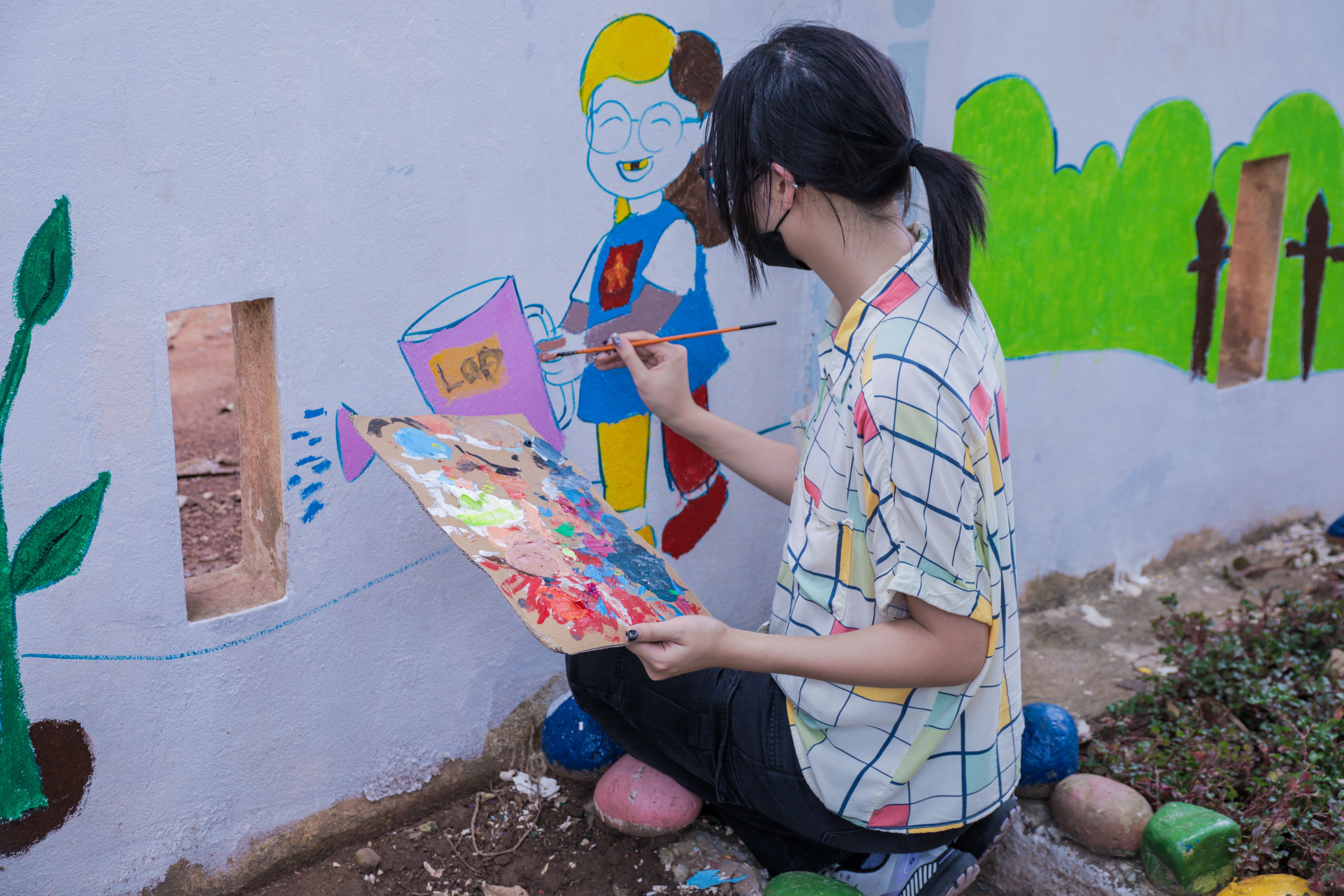 Above: Lucia painting a mural and sharing her creative spirit for the kindergarten school during her Citizen Diplomacy Trip.